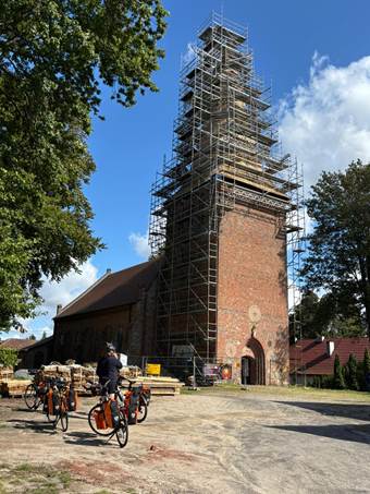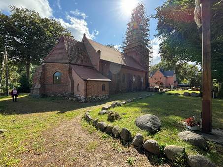 Bublitz. Im Hintergrund die Backsteinkirche Foto: Angelika Schnack, 26.08.25 |